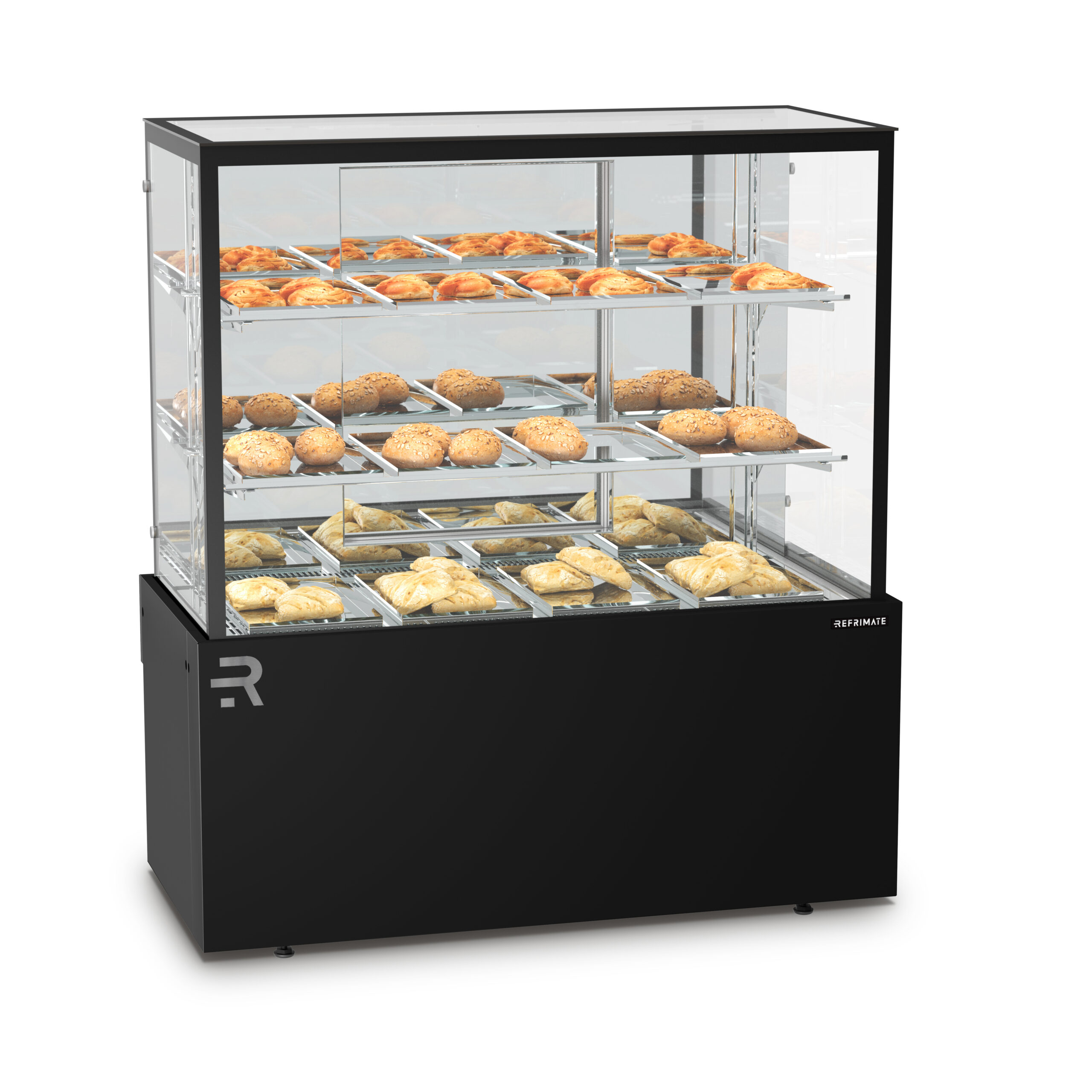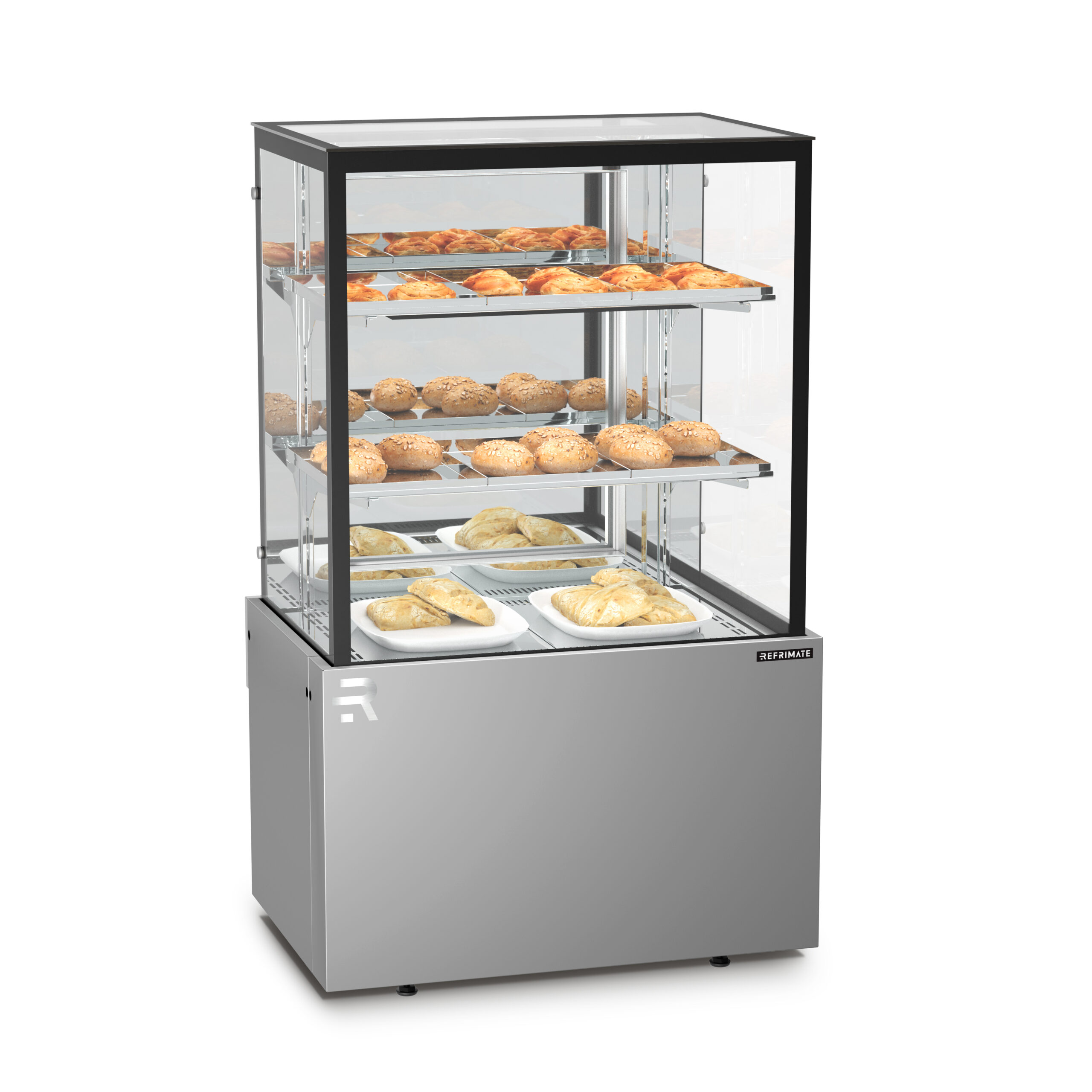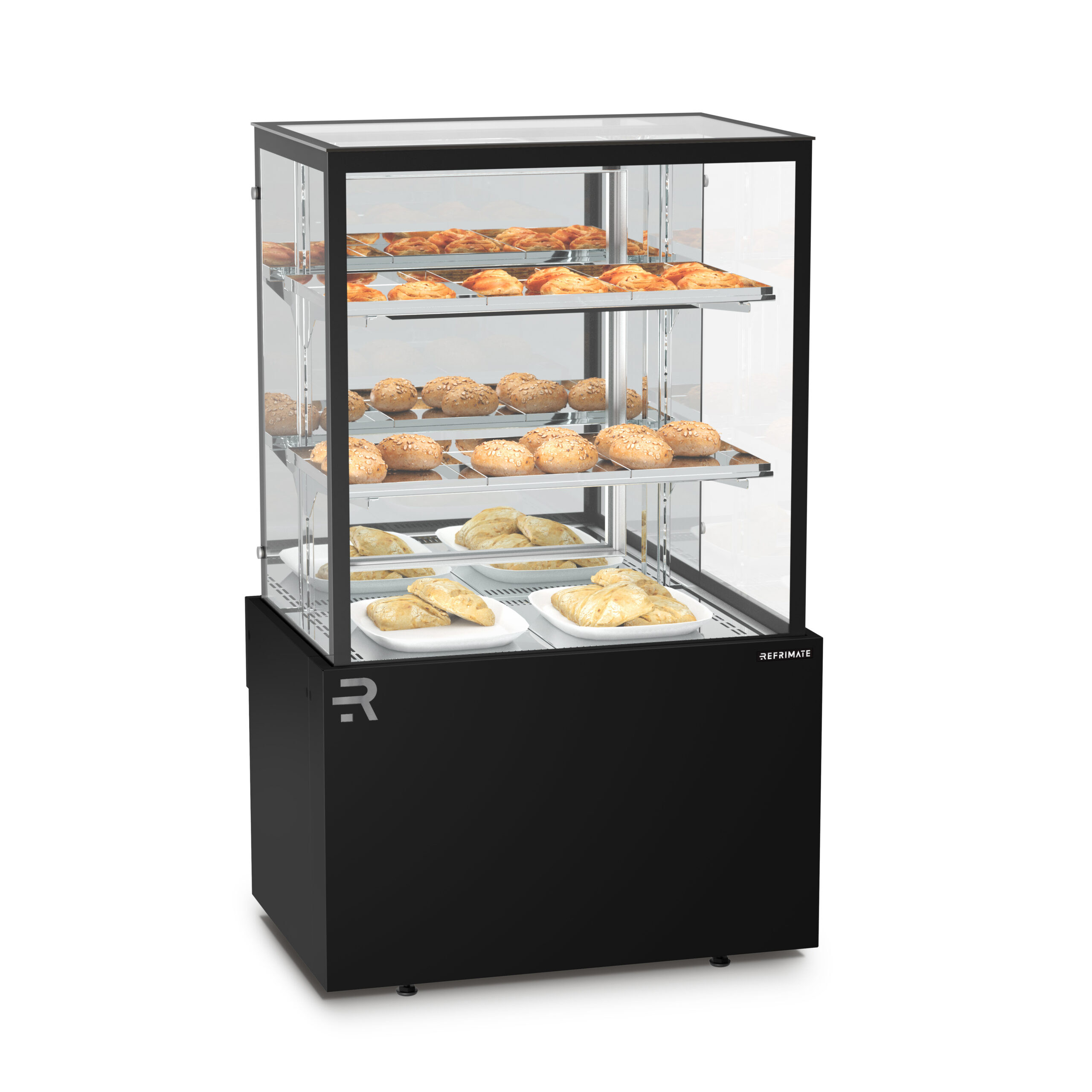 Available in three configurations — CVTR (Refrigerated 37–40 °F), CVTQ (Heated 140 °F), and CVTS (Dry, ambient temperature) — this model adapts to a wide range of display needs, from refrigerated pastries and desserts to warm baked goods and ambient items.