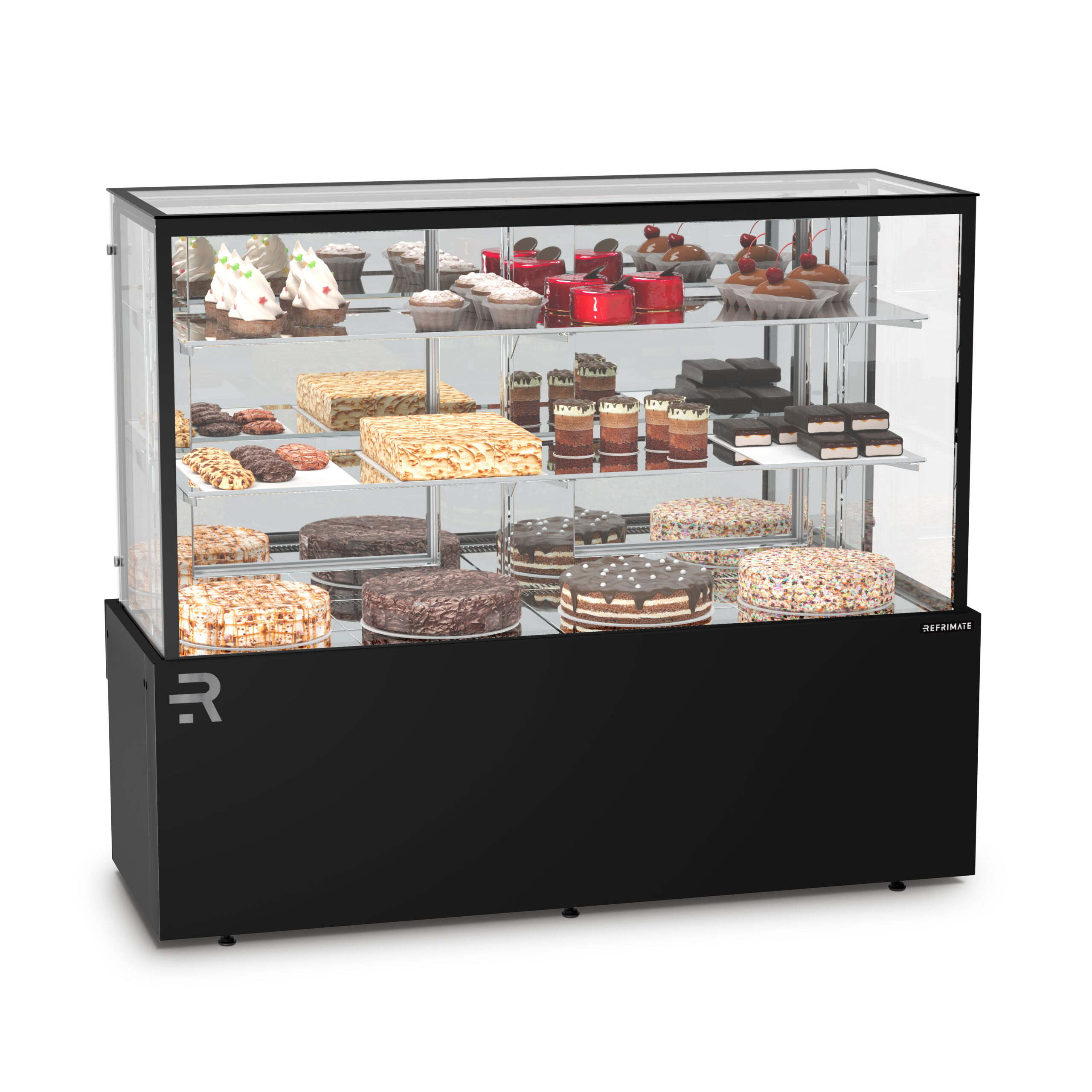 The CVT Vanguard Top Display Case is a professional showcase designed for bakeries, pastry shops, and cafés that demand both elegance and functionality. Built with tempered glass and a stainless-steel finish, it provides excellent visibility and precise temperature control for every type of product.